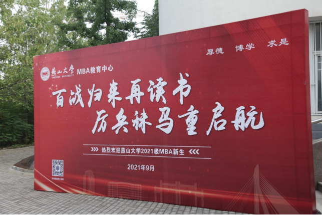 的脚下,找到了我们新的家。MBA教育中心用最盛大的仪式来欢迎我们,红彤彤的大招牌印着“百战归来再读书,厉兵秣马重启航”的字样站在那里迎接着我们每一个新同学,也是让我们感动的涕泗横流了一把,每个同学都激动的站在它的面前合影,因为它承载着我们的梦想,代表着我们的追求,盈满了我们的希望!