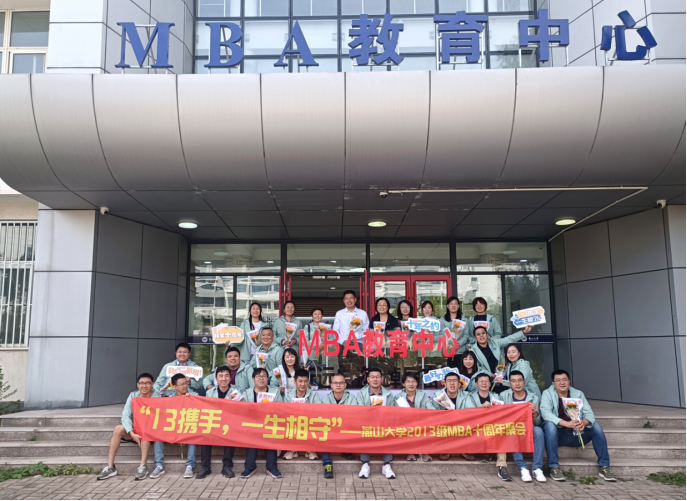 2023年9月,我校经管学院2013级MBA秋季班的同学们,迎来了入学的第十个年头, 为纪念一起走过的日子,9月23日,他们穿着统一印着“13携手,一生相守”的夹克衫,组织了“重返燕园”的纪念活动。